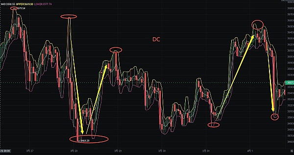 接下来是DC指标,全名为Dynamical Support and Resistance(动态支撑和压力)。DC指标也是一种计算动态支撑和压力水平的指标,它使用波动幅度的概念来确定价格的支撑和压力区域。DC指标包括两条线:上轨线和下轨线。
