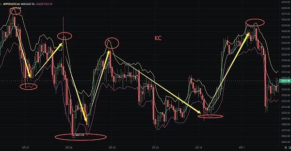 KC指标通过观察价格在通道内的运动来判断市场走势,历辉认为当价格突破上轨线时,可能表示市场处于上升趋势,反之突破下轨线可能表示市场处于下降趋势。当价格在通道内震荡时,通常可以期待市场将维持当前趋势。