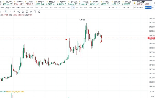 从技术上看iotx目前来到了日线支撑上方,0.07只要能二次回踩不破 就有望继续向上来一波爆发。