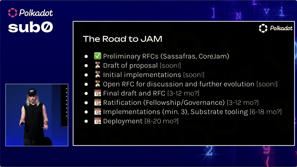 如果您想了解更多关于 JAM 的信息,请查看 CoreJam 的草案 RFC。需要注意的是,这是初稿,许多技术细节已经发生变化。关于 JAM 将会有新的 RFC 草案发布。? https://github.com/polkadot-fellows/RFCs/pull/31