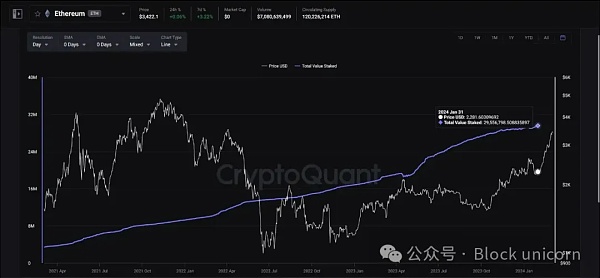 网络上质押的以太坊 | 来自 CryptoQuant 的图表