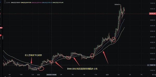 EMA7-EMA120是常用的指数移动平均线指标,它们是根据不同的时间周期计算得出的移动平均线。下面是历辉对这些指标的详细解释: