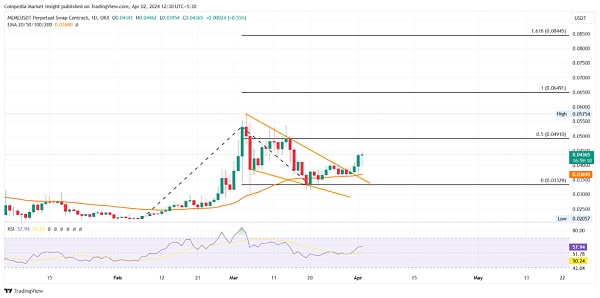 如果 MEME 价格突破了0.050美元大关,上涨趋势可能会达到 0.064 美元。