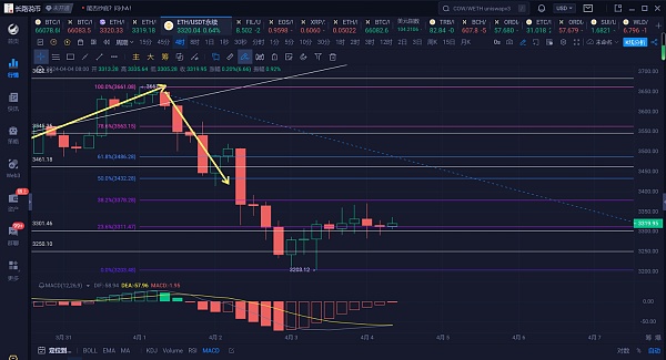 长路说币:4.4以太坊双针探底3200附近支撑,今天主区间震荡