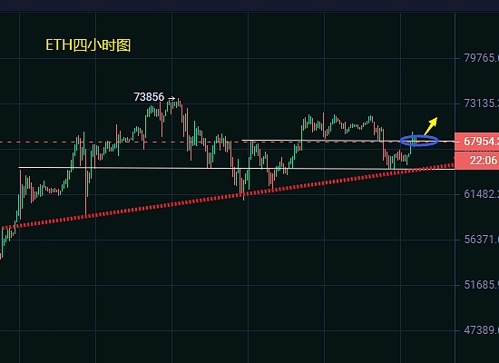 结合上面的分析,凌晨的回踩支撑位在67300一线,早盘的下跌如果没有以大阴线的方式强势击穿此位置的话,短线还是看凌晨的反弹延续,一旦强势跌破,日内走势也将转空。小时线看,关键阻力压制在69000关口,短线转换位68200一线,日内如果能够反弹站稳此位置,短线也继续向上反弹测试69000阻力;四小时完成了对64500一线的支撑回踩测试,四小时此支撑没破,币价也很难下行,昨日依托此位置反弹后,四小时目前上行趋势性并没破,日内将重点关注69000关口的压制,短线操作上回踩做多为主。