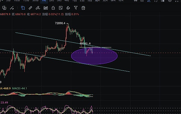 69000-69500分批开空,目标68300-67500附近