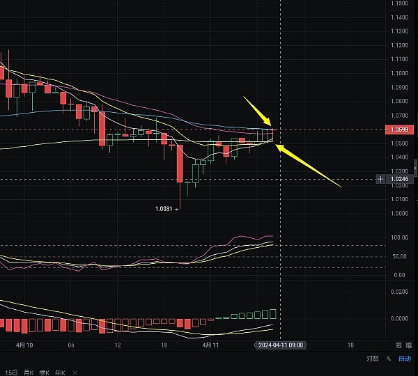 综合上述指标来看,建议在第一反弹位1.0500位置多,第二低吸1.0450位置多,止损1.0415;上方看到1.0750-1.0800区间;文章审核有延迟,行情瞬息万变,请带好止盈止损,见好就收!