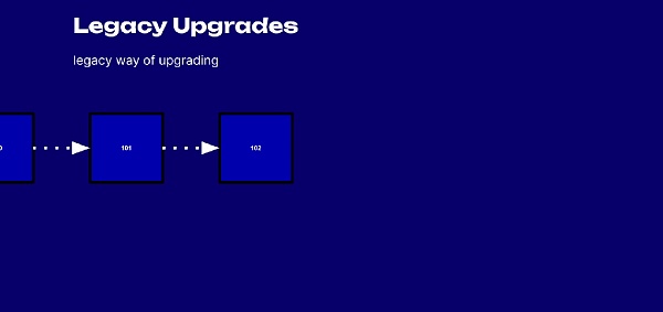 要更新链的逻辑,只需上传一个新的 Wasm blob,所有节点都会自动与新的链逻辑同步。让我们回顾一下通过传统方式与 Substrate 方式升级链的流程。