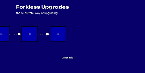 从头开始设计的 Substrate 考虑到了无分叉升级(forkless upgrades)的概念。该 Wasm 被上传,存储在链上,并且是基于运行链的逻辑。数据库用于存储链的状态,其中就包括 Wasm blob。