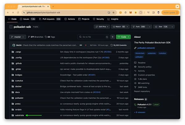 Substrate 代码的位置在 Polkadot SDK 存储库中: