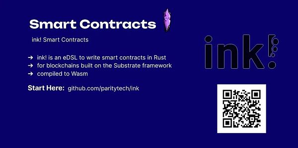 ink! 是一种嵌入式领域特定语言(eDSL)。编写 ink! 智能合约就像涂抹黄油一样简易。ink! 智能合约编译为 Wasm,因此与 Solidity 相比,性能得到了额外的提升。ink! Wasm 合约运行在一个名为 pallet contracts 的 Substrate pallet 上。因此,任何运行 pallet contracts 的基于 Substrate 的链都可以运行 ink! 智能合约。
