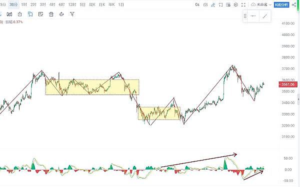 行情解析; 整体大趋势维持上涨后高位宽幅震荡,虽然近期结构上频繁小转大,但从3735至3413本级别回落未能有效击穿3450关键位,目前价格经过隔夜反弹后已经重新站上3450甚至3500上方。那么在前日我们提醒过由于3203向上本级别三笔结构并不背驰,因此需要注意三买结构出现。下方关键支撑 3410,3350.