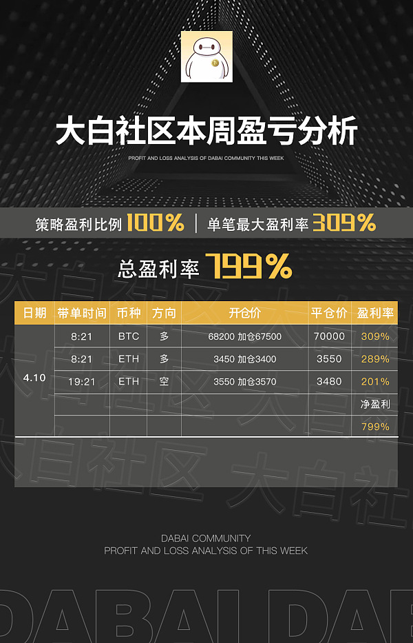 下方是大白社区本周实盘群单子,恭喜跟上的币友,如果你操作不顺,可以来试试水。