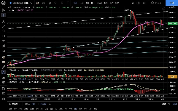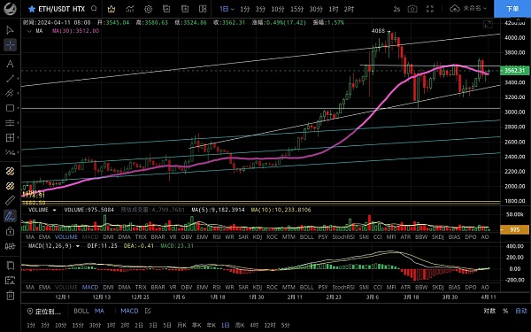 以太坊昨日白盘呈震荡走势,晚间再次选择下跌最低至3410一线支撑反弹,最高触及3580附近受阻,恭喜跟上思路的朋友多单获利一百余点,目前币价在3566附近运行,四小时级别虽跌回起涨点,但空头没有延续,止跌后空头力度逐渐减弱,行情再次陷入震荡调整,短期虽受阻回踩但力度不会太大,短线波动不大没什么好的入场位置,继续拿好筹码吧,日线级别底部抬高,行情逐渐企稳,虽冲高失败但走势没有变坏,目前来看预计要走几天调整了,只要站稳3650上方则有再次冲击的机会,思路不变保持低多为主,上方压制3600-3650,下方支撑3520-3480
