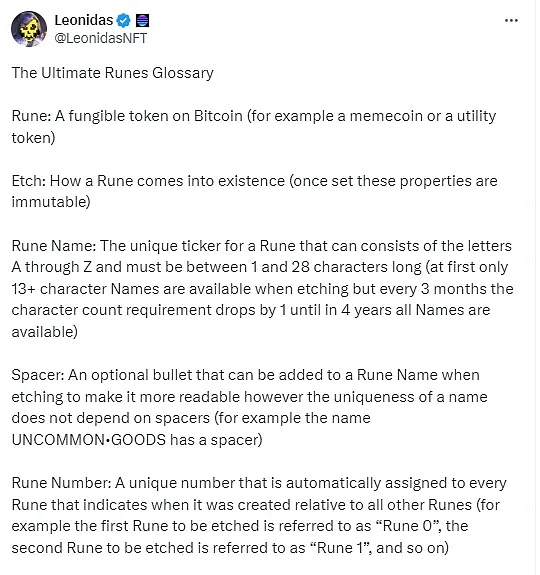 2024年4月2日,Leonidas 发布 Runes 协议词汇表。