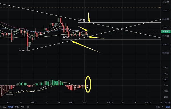 上方关注三角顶部3580不破空,可接到3490位置,止损3610;