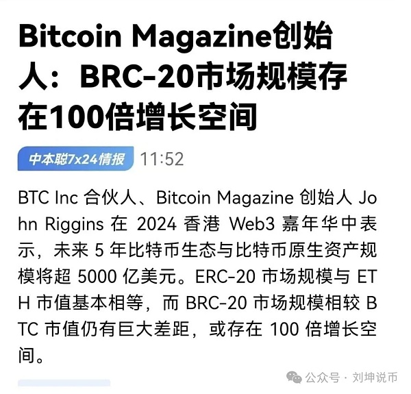 此次 BTC 减半压力巨大。通过 BTC 生态的打造,提供手续费收入,减轻矿工对减半的压力,将对现有 BTC 算力网络的安全和稳定,提供一定助力。所以 BTC 生态,是一个刚需发展的方向。BTC Magazine 创始人喊出 BRC20 市场规模存在 100 倍空间,目前机会任然巨大。