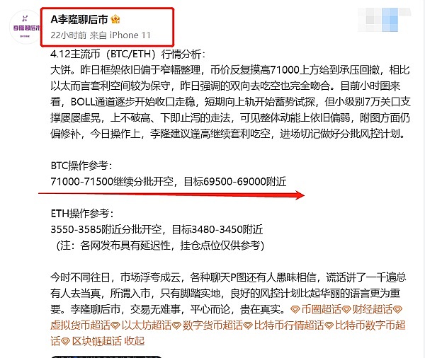大饼。如李隆昨日午间所说,反弹71000上方直接去空,午夜大跌眼镜更是触及65000附近,短线盘中再次精准扫盈,看空思路走出6000余点的把握空间,实力番苍,全网见证!点位依旧精准吻合,盘中理性稳健取舍。李隆聊后市,交易无难事,平心而论,贵在真实。
