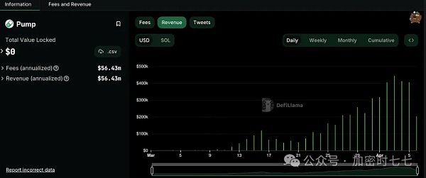 Pump.fun每日收入(来源:DefiLlama)