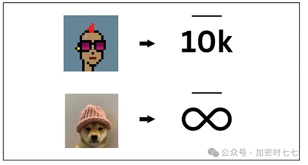 虽然NFT收藏的稀缺性使它们成为了一种极好的奢侈资产,但只有有限数量的参与者受到激励来提高收藏的可见性。像Cryptopunks这样的头像收藏品,供应量上限为10000,可以作为令人崇敬的身份象征。然而,同样的上限将粉丝群体限制在最多10000人,限制了Memecoin所享有的更广泛的参与和可见性。