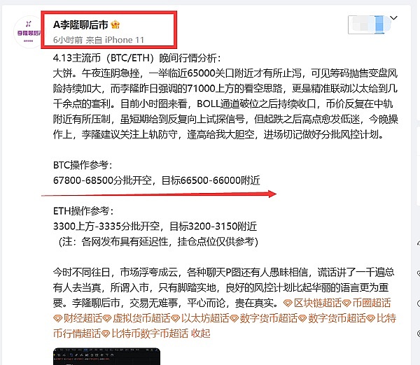 李隆:4.14主流币(BTC/ETH)大饼止盈复盘
