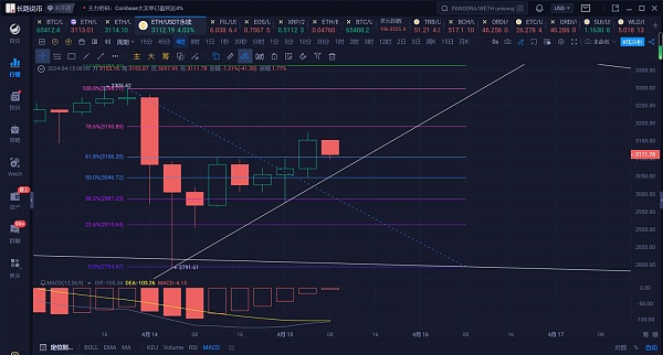 长路说币:4.15以太坊插针周线中轨反弹,大饼减半行情临近还能再次反弹吗?