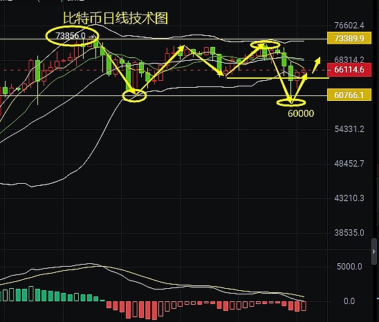 短期上方压力位:67000/68000 短期下方支撑位:65500/65000