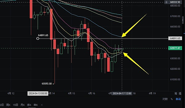 综合上述指标来看,日内操作还是建议回调低位入场为主,高位不破为辅,建建议63600-63900区间多,止损63000,破位63350可直接多,止盈64850-65350,破位65500可继续持有。上方关注65900不破,65850附近空,目标1000点+;