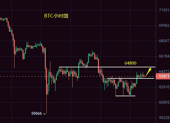 短线上,昨日比特币我们在61600一线完成一次抄底,日线在挣扎中勉强收阳;今日的话,早盘回调短线继续看反弹,上方关注64800一线阻力压制,日线看涨分水岭依然关注68000关口,日内回踩62800-63300多。
