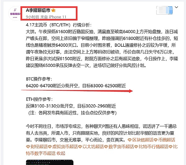 李隆:4.17主流币(BTC/ETH)大饼复盘回顾