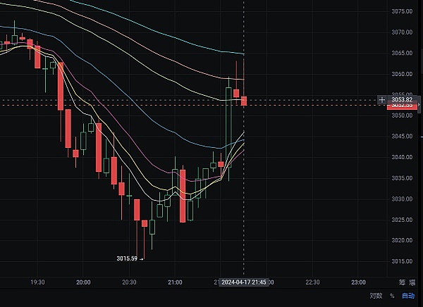 以太坊<8%仓位,3040下方多,目标50点+;下方预留5%仓位2950下方补仓