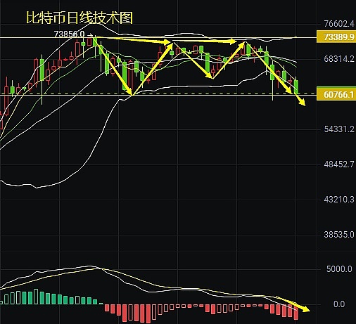 比特币行情分析:持久震荡,必有破位,好在我们一直在坚守空一直到暴风雨的来临。今日大饼63800空以及美盘62790的空相当完美,尤其是美盘破位之后,空头直接垮掉,利润瞬间翻几倍。大饼弱势之下,空头再度发力,下方直指60000美元关口,前期几度试探未破反而碾转上行,对于本次而言下破的概率很大,60000美元关口则是我们今晚重点关注的位置。在日线四小时以及短线破位的情况之下,暂且不考虑多单进场(除非小时线连续性收阳即可轻仓博多),在这样的趋势之下我们就应该顺势做空以及反弹空。