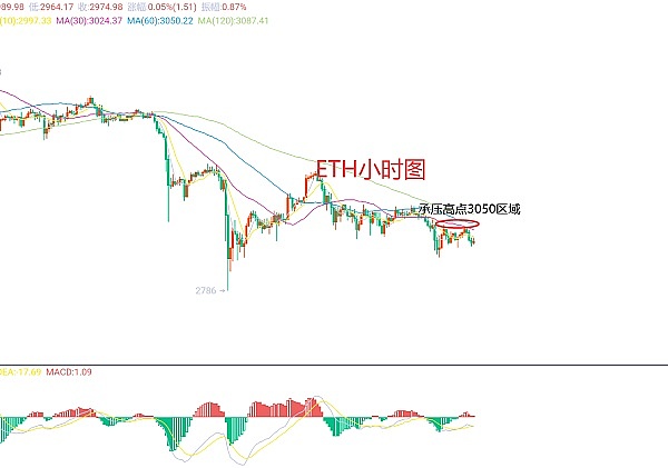 4月18日以太坊(ETH)合约技术面分析:今日方面,大周期日线级别昨日报收小阴线,K线形态连阴下跌,价格在均线下方,附图指标死叉放量运行,大趋势上还是明显的下跌弱势走势,只是没有达到极弱而已,所以交易上我们还是需要去找点为,找程承压点再去进场做空;短周期小时图昨日美盘下跌凌晨反抽修正高点再3050区域附近,当前价格在早间二次承压,K线形态连阴,附图指标死金叉缩量,快慢线有粘合死叉迹象,所以日内我们还是看空延续的,因此今日ETH短线合约交易策略:现价2975区域直接空,止损3001区域,目标看2915-2900区域