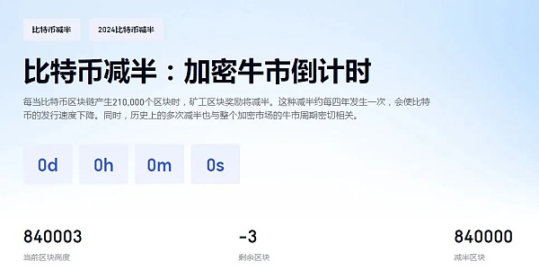 ·比特币于4月20日(北京时间)进行奖励减半,即区块补贴减少50%,这是自15年前比特币推出以来的第四次减半。