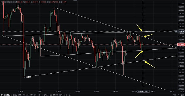 下方关注第一支撑位3015不破轻多,第二测试支撑位2955不破多,止盈3050-3095,止损2930;