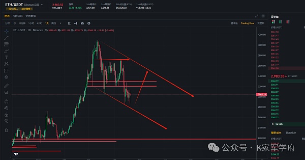 ETH作为山寨的头子,这轮的涨幅是没有超过大饼的涨幅的,而且跟ETH相关的一些山寨也没有完全的带动起来,目前ETH的行情弱势还是处于一个下行通道级别的底部反弹的位置,从日线级别上明确的看到ETH的行情是出于日线级别下行通道的边点防守位置的第三个点触及反弹,而且反弹的力度是相当差的,没有很强势,这段时间山寨都是不想跌的一个状态,但是也没有很强的反弹力度,按照山寨的底部来讲,强势点的反弹了50%左右,弱势点才20-30%的反弹力度,ETH现在处于盘整结束反弹期间,第一目标点位可以关注3400带你附近一线,前期我们一直关注的节点位置3800点一直以来都没有得到突破,这轮就看3800能否启动冲击突破并站稳带动我们想要的山寨集体起飞,只要二饼站稳3800点后续可以直接看到4200-4500区间