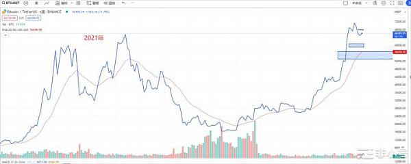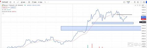 等价格到达67900附近后,观察价格后续的走势,才能判断上涨行情是否会继续。