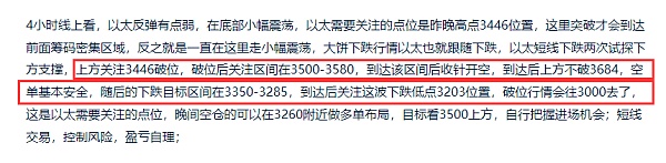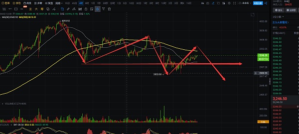 4小时线上看,以太的整体走势相对于大饼来说还是弱一点,前面反弹到4093后的反弹也比较弱,随后的下跌直接跌破了短线低点3056位置到达2852,随后的反弹也不如大饼,以太这波反弹预计到达3395就不错了,上方的3540位置预计有点难到,后面的下跌应该会再刷新低点,白盘关注以太到达3395附近的情况,以太白盘压力在3260附近,昨晚到达后短线走出小幅震荡下跌,短线会有再度冲击压力的机会,往3395去靠,白盘交易上,可在支撑3190附近布局,不给机会就不进,因为现在已经在试探上方压力了,反弹到3395附近后,关注下大饼到达上方压力区间后的收线情况,收上影线即可做空单布局,自行把握进场机会;短线交易,控制风险,盈亏自理;
