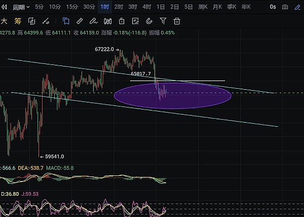 64500-65000分批开空,目标63800-63000附近,破位再做安排