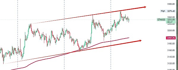 ETH同样形成了一个上涨通道。若BTC调整,ETH以及众多币种也将呈压,超短注意风险。