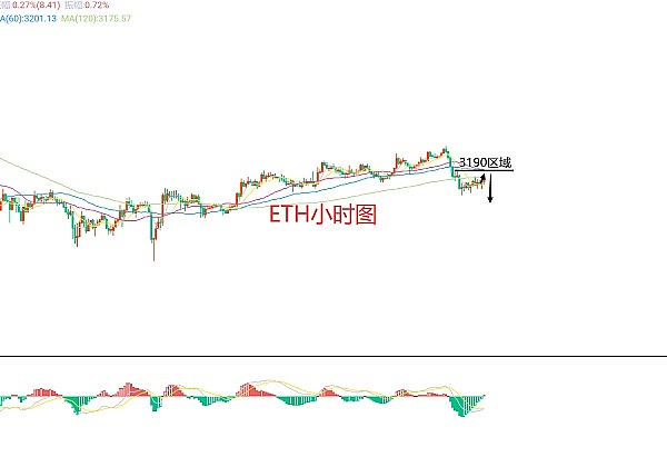 4月25日以太坊(ETH)合约技术面分析:今日方面,大周期日线级别昨日报收小阴线,K线形态连阳单阴,而价格上出现了破位的信号,附图指标快慢线粘合金叉运行,但当前力度和延续性都没有出来,昨日又出现较大的回撤走势,所以今日多就要放一放了,看延续下跌的话,那么反抽力度就不能大,短周期小时图昨日美盘下跌破位前一日低点,凌晨价格横盘整理,当前K线形态连阳,附图指标金叉运行,那么日内还是有修正需求的,凌晨修正高点3190区域附近,所以日内要等点位进场了,因此今日ETH短线合约交易策略:反抽3190区域空,止损3218区域,目标看3130-3115区域