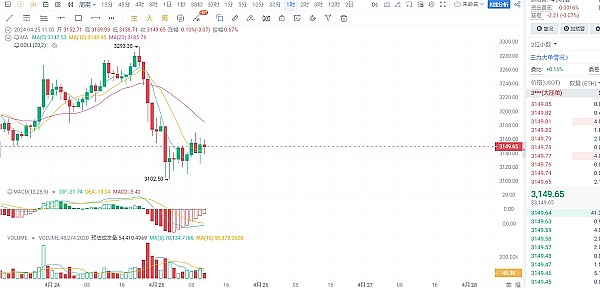 以太当前小时级别来看,夜间探底3100一线后反弹,目前价格低位震荡,走势并没有多大的变化,多头依旧保持弱势.后续走势可以关注3200位置,若夜间无法站稳此位置,后市仍有一波回撤要走.