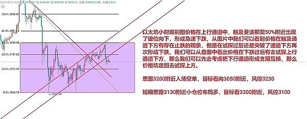 思路3200附近入场空单,目标看向3050附近,风控3230
