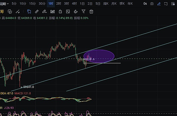 大饼。昨日早盘弱势续跌停滞不前,晚间插针探低62700附近强势收回,6.3关口的防守突破给到试探假象,随后反攻65000上方吞没起跌点,可见下方吸筹信号控盘凝重。目前小时图来看,币价重回中轨上方高位整理,昨日框架破位加剧午夜起死回生,附图方面仍有金叉二次增量修补信号,MA20/30均线反复在底部贯穿粘合形成有效支撑,短期趋势由空转多,李隆建议围绕昨日的低点防守,回踩去分批多,进场切记做好分批风控计划。