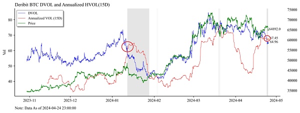 从技术形态上看,BTC有筑顶的意思,走势逐步在偏弱,盘面上欧美和亚洲资金似乎都变得冷静了,观望氛围浓厚。从期权市场波动看,这个位置确实让人恐慌。