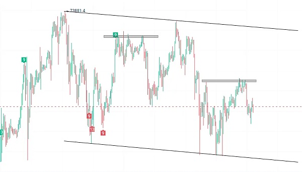 震荡区间也是有三波上涨,每波上涨的量能也在减弱,高点也没有依次变高,这说明多头乏力,上方存在较强的阻碍。总体来说价格距离下方支撑比较近,上方阻力较远,新一轮的空头也开始继续尝试往下跌。不过就目前的这种缩量下跌,以及靠近关键支撑位,是很容易发生变盘的。