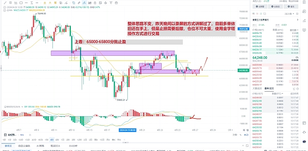 比特币目前一直维持缺口筹码区间震荡,上不上下不下的,让人实在是很难受,整体来说也是偏向空头的,但是每次比特币减产都会有这样的情况,历史虽然不会从来,但是历史是会很相似的,这次的牛市操盘手也改变了以往的方式,所以在交易合约的时候,一定要带好止损,老王不想看到爆仓新闻中的人数有你们其中一个,比特币关注下方62500这个位置,BNB老王已经连续在视频中说了4天,600附近做多,已经给到好几次入场机会了,不知道有没有粉丝抓住这波利润