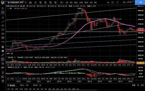 以太坊走势与大饼一致,晚间最高反弹至3170附近受阻回落,随后行情一路下行至3068一线支撑,恭喜跟上低多的朋友获利五十点,目前币价在3110附近运行,四小时级别行情延续空头走势再次下跌,但没能跌破3050区域支撑,目前走势暂时止跌反弹,指标仍偏向空头,若四小时能收线在3100上方,行情则有反弹需求,反之会继续向下试探,还是关注3050-3000支撑情况,日线来看走势偏弱,虽连阴回落但量能未跟,预计下跌空间不会太大,目前来看给到ma120附近机会可以逢低买入,随后持币等待,个人认为未来以太坊一定会强于大饼,上方压制3170-3230,下方支撑3050-3000