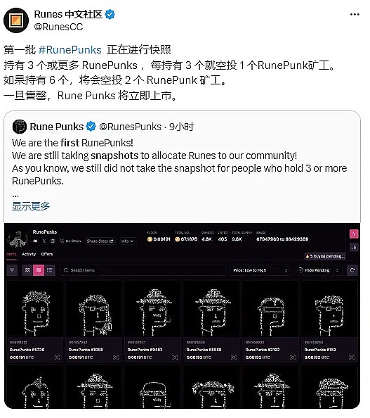 2024年4月28日,Rune Punks 发文表示第一批 RunePunks 正在进行快照。