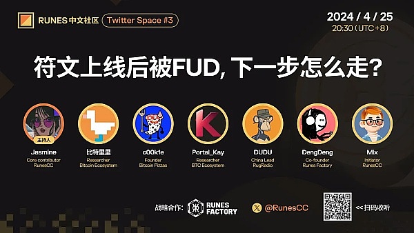 2024年4月25日,Runes 中文社区开展《符文上线后被FUD,下一步怎么走?》线上主题 Space。